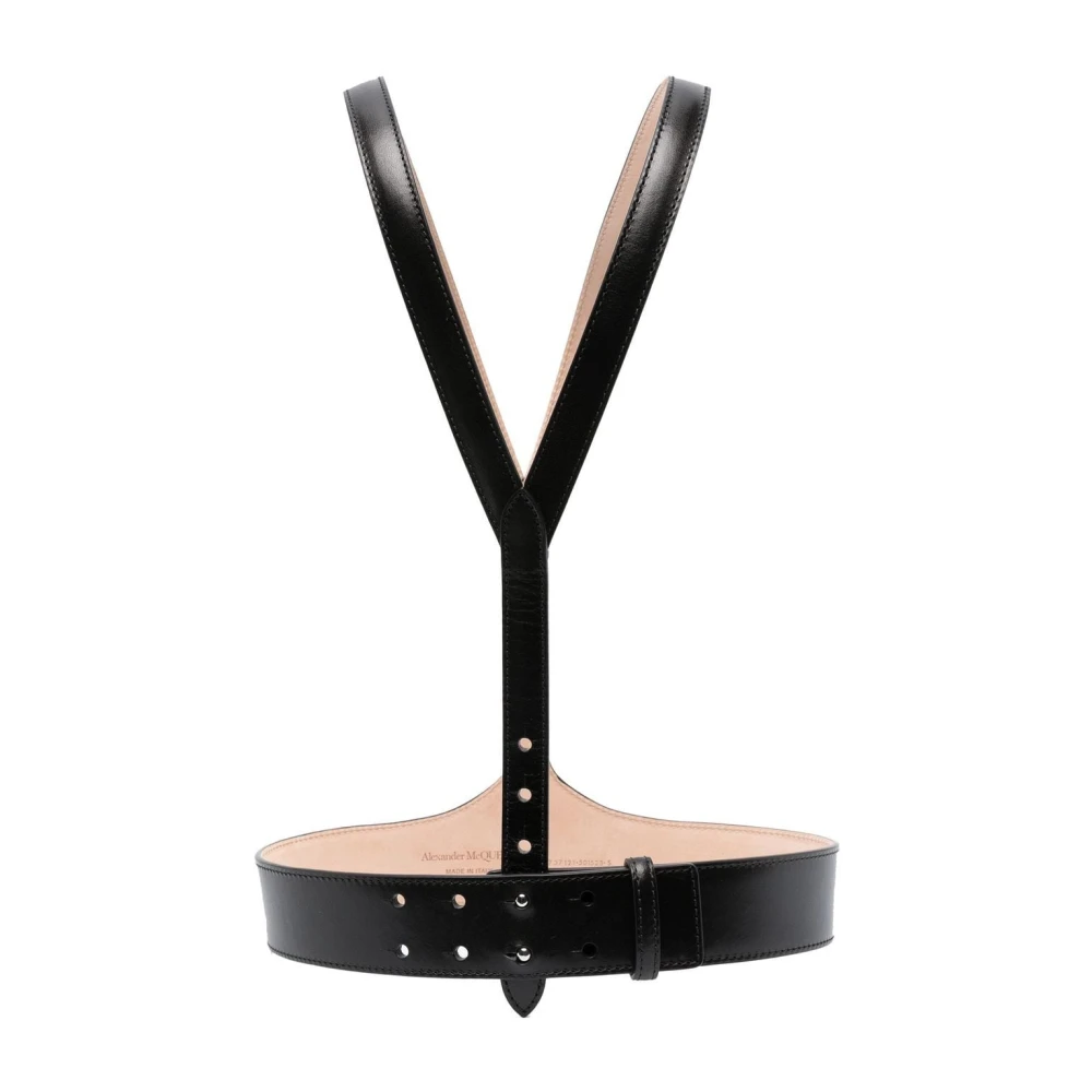 Oppgrader tilbehĂžrsspillet ditt med disse Alexander McQueen Casual svarte skinnbuksene. Det Y-formede designet har en logo-embosset stropp, punch-hole detaljer og justerbare skulderstropper for en behagelig passform. Laget av 100% kalveskinn, er disse buk