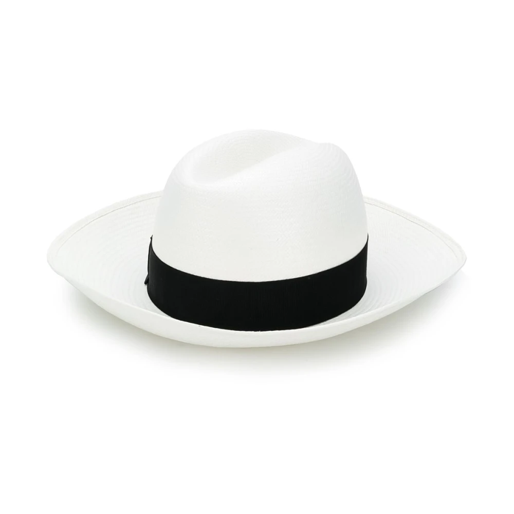 Borsalino Hats Black White and Black Strap Strap Detail Hat fra Borsalino med en vevd design.