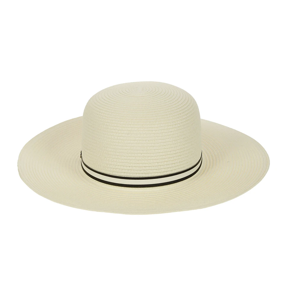 Borsalino Giselle Braided Papier Hat har en 9 cm bred rand og 1,5 cm dobbel fargestripet hatbånd med metalllogo -stud.