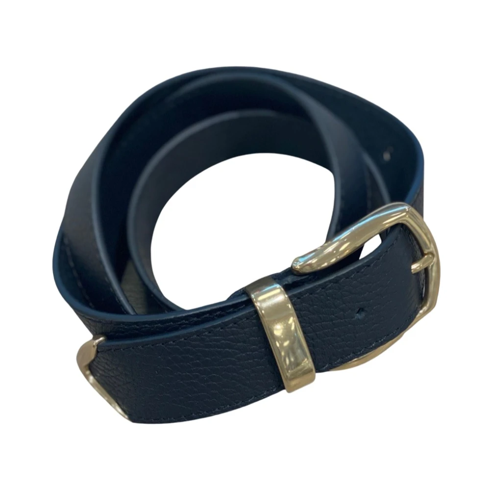 Nebel Belt fra Cala Jade er et klassisk skinnbelte. Bredde 2,5 cm. Farge: Black/Gold Materiale: 100% kalveskinn