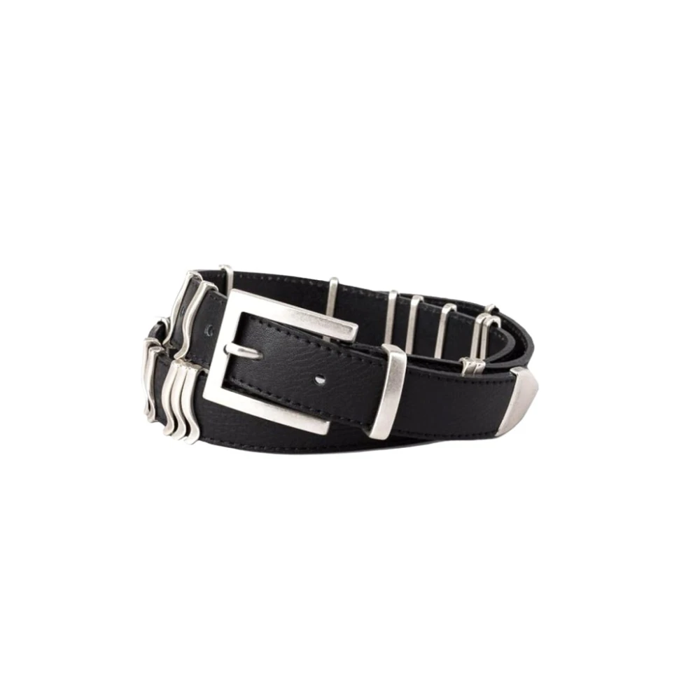 Rattle Belt fra Cala Jade. Statement belte med Cala Jade sine velkjente ståldetaljer. Et musthave i garderoben. Bredde 2,5 cm. Farge: Black/Silver.