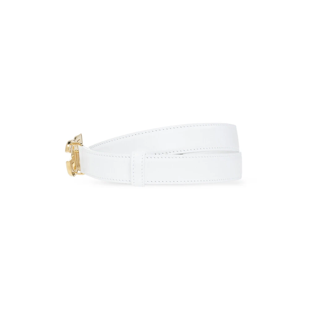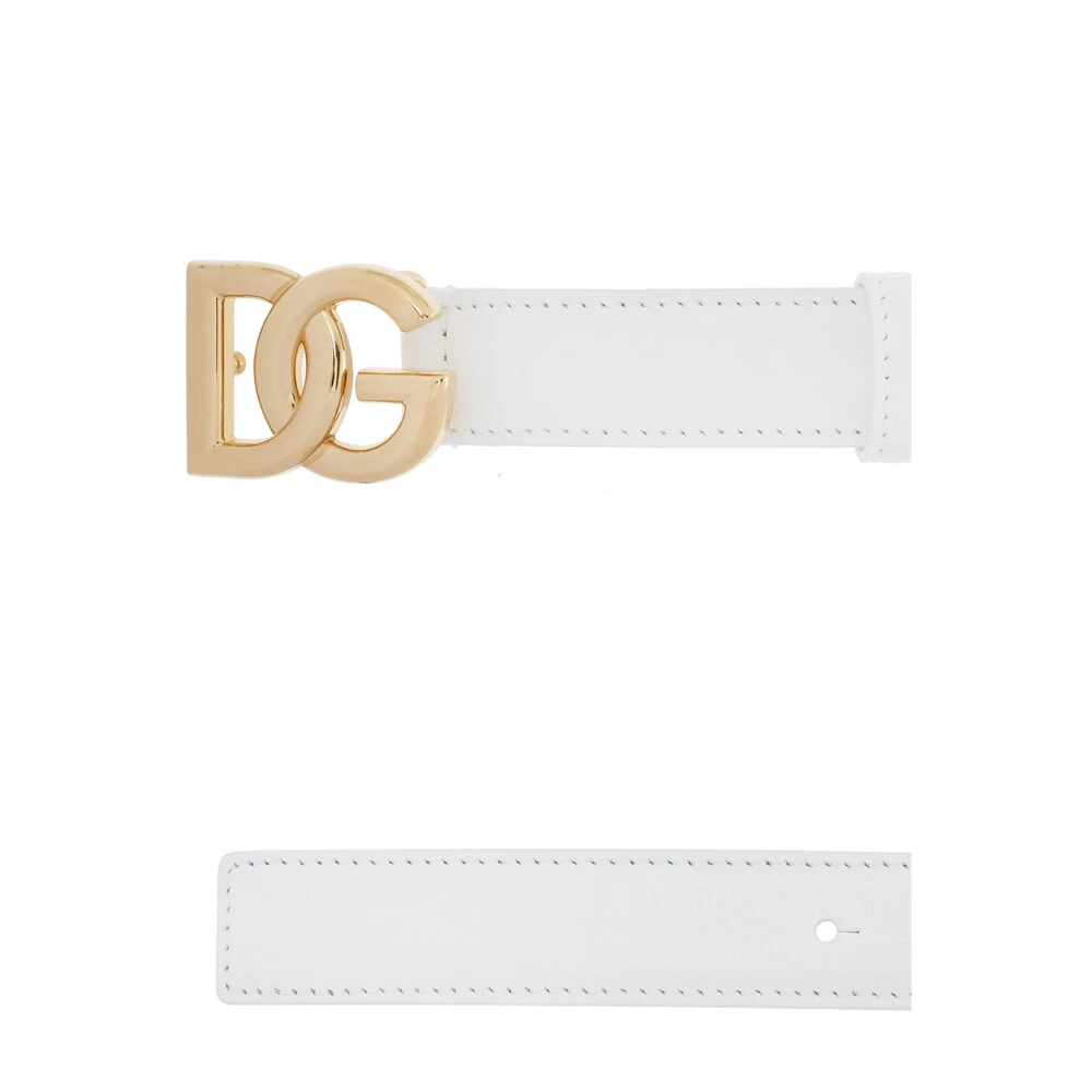 Fullfør antrekket ditt med denne vakre Dolce Gabbana beltet for kvinner. Det hvite kalveskinnsbeltet har det ikoniske DG-logoet og en gullfarget metallspenne. Laget av 100% kalveskinn, er dette tilbehøret både stilig og holdbart.