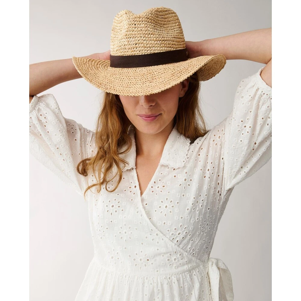 • Stråvevet • Tape tape rundt hodet • Preget logo på stroppen • 100% naturlig naturlig holder deg kjølig og stilig i sommer i Texas Straw Hat. Solhatt i 100 % naturlig halm som er perfekt for varme sommerdager. Det brune pannebåndet gir et elegant preg mens det er nøytralt nok til å bli matchet med forskjellige antrekk. Lexington -logoen i metall setter prikken over. Enten du er på stranden eller slapper av i din egen hage, vil hatten følge deg hele sesongen. 57cm (rundt hodet) uni størrelse