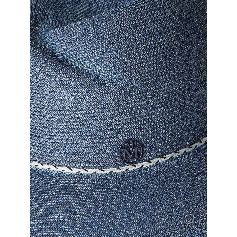 Maison Michel Hats Blue Blue Paper-Blend Virginie Fedora Hat fra Maison Michel med intervvevd design, kontrasterende trim, logosjarm og flat rand.Denne beskrivelsen er automatisk oversatt.