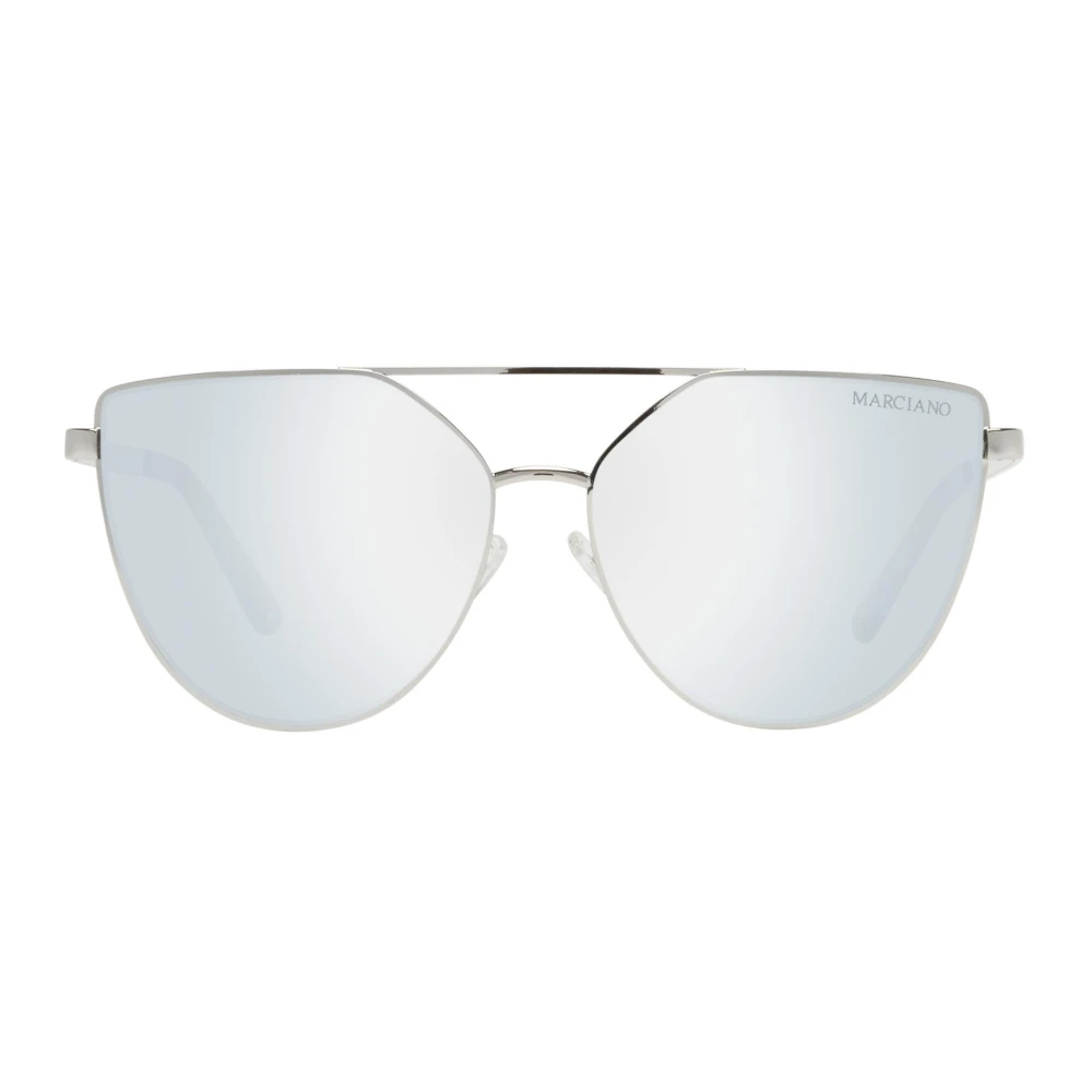 Gjør deg klar til å skinne med disse Marciano sølvfargede butterfly solbrillene for kvinner. De blå speilglassene gir 100% UVA og UVB beskyttelse, mens metallrammen legger til et snev av eleganse. Forsendelsen inkluderer et merkeetui, rengjøringsklut og dokumentasjon. Perfekt for enhver anledning, er disse solbrillene et must-have tilbehør for enhver motebevisst kvinne.
