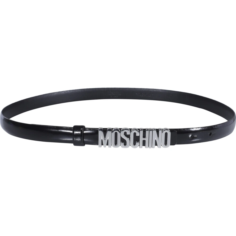 Fullfør antrekket ditt med denne svarte MOSCHINO-beltet for kvinner med et frontalt logo. Laget med høykvalitetsstoff, er denne beltet et must-have tilbehør for enhver motebevisst kvinne.