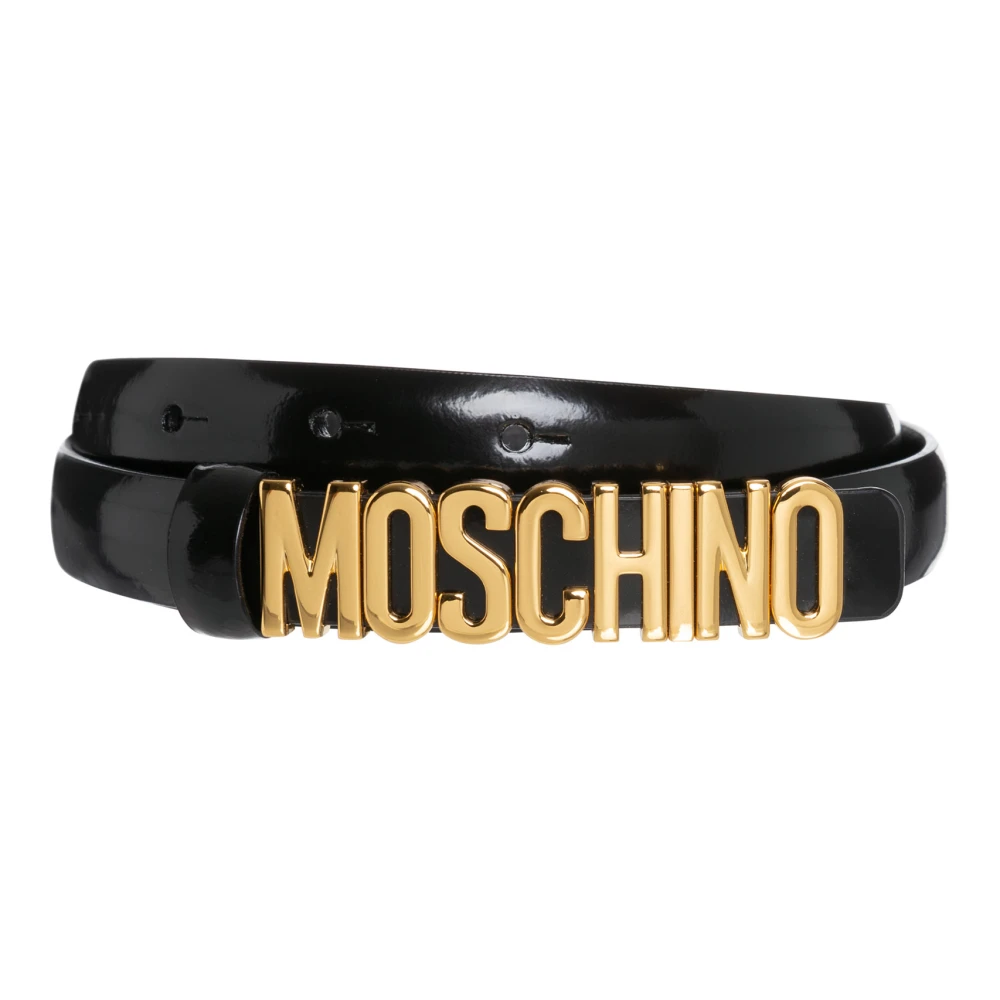 FullfÞr antrekket ditt med denne Moschino lÊrbelte for kvinner. Det ensfargede mÞnsteret og logo-detaljene legger til en touch av sofistikering til ethvert utseende. Spennet sikrer en god passform, mens hÞyden pÄ 1,5 cm og bredden pÄ 102,0 cm gjÞr det til et allsidig tilbehÞr. Laget av 100% lÊr, er dette beltet bÄde holdbart og stilig.