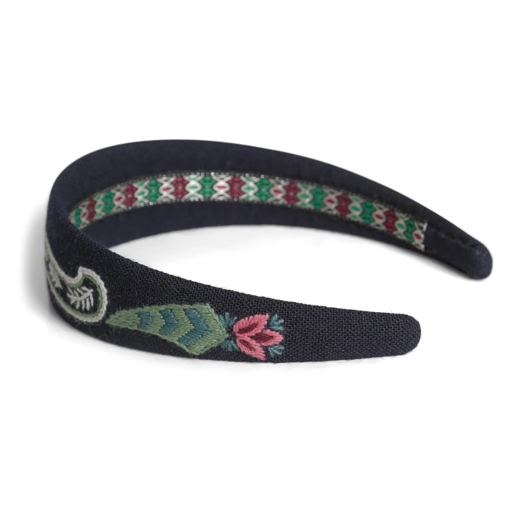 Hårbøylen er håndbrodert. Farge: Mørkeblå
