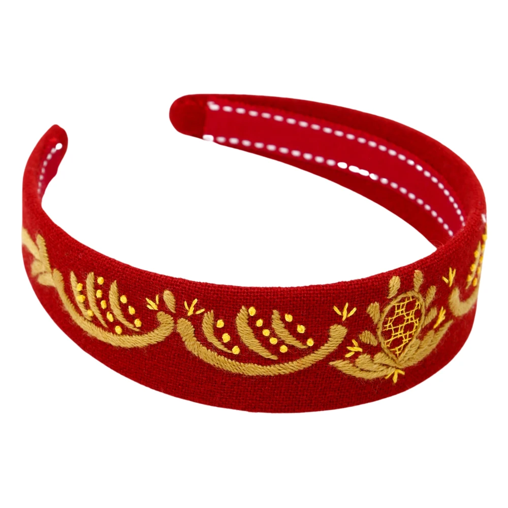 Rød hårbøyle til Romerikebunad. Håndlaget. 100% ull