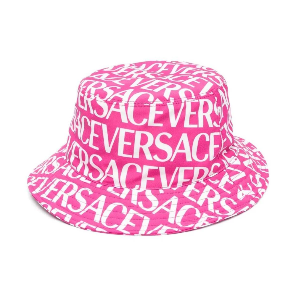 Hold deg trendy denne sesongen med Versaces logo bucket hat. Laget av mykt nylon og med en all-over monogram design, er denne hatten det perfekte tilbehøret for varmere dager. Tilgjengelig i rosa og bianco, er denne hatten laget i Italia og er et must-have for enhver motebevisst kvinne.