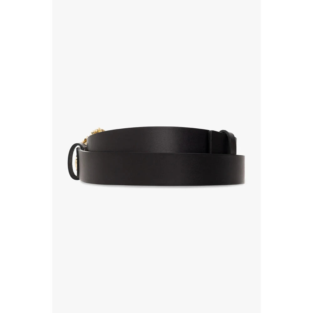 Svart belte fra Versace Jeans Couture. Laget av bovin lær, har dette elementet to dekorative barokkspenner i gulltone, fremhevet med merkelogoet. Bredde: 3cm