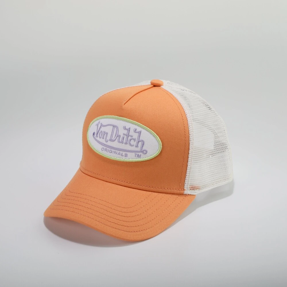 Trucker Boston fra Von Dutch. De ikoniske capsene fra Von Dutch er tilbake. Trucker Boston er en klassisk trucker caps med pustende mesh bak og stor, brodert logopatch i front. Capsen har hvit netting, hvit brodert logo og orange stoff, og regulerbar størrelse. – Von Dutch logopatch- Pustende mesh bak- Buet brem- Justerbart panel- One Size